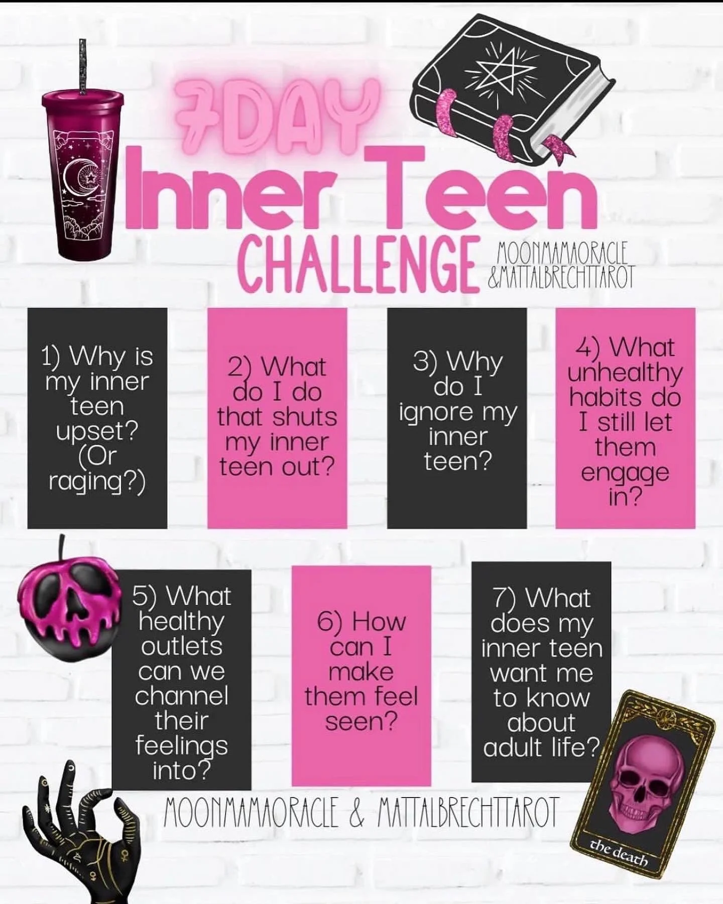 I decided to use a new approach. Pulling one oracle card a day and 3 tarot cards as clarifiers. I have always done it the other way. One tarot card and then three oracle cards. What I like about this approach (that I learned from Sara over at @shopthe8thhouse) is that it goes from being broad to very specific and it felt like the way to do this work. I needed a broad idea of how inner teen me was feeling and they get very specific about those feelings.